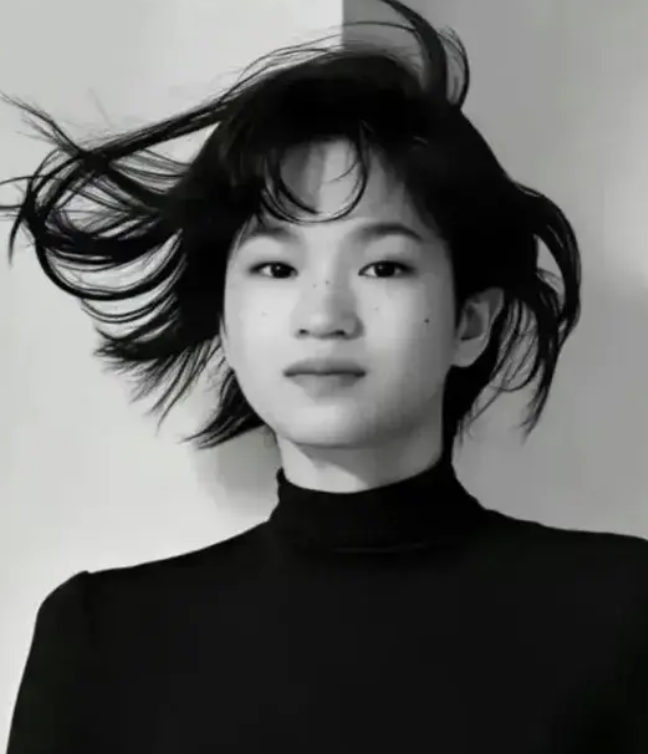 照片里的她穿着黑色高领毛衫,眼神锐利地看着前方。下巴微微抬起,那股不服输的劲儿一览无遗。风吹过她的发梢,勾勒出清晰的下颌线条。